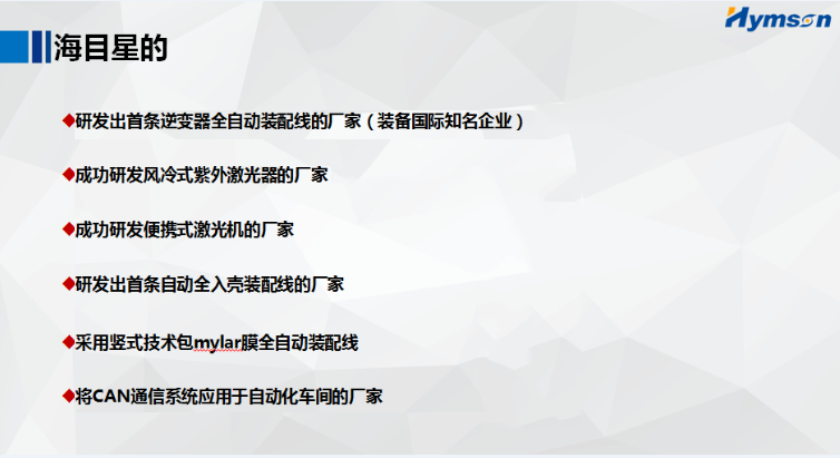 多年來,海目星一直堅持以客戶為關注焦點,不斷提高產品質量和服務水平,時刻解決客戶技術難題,以為客戶創造價值為己任,滿足市場為市場提供高技術高質量的新型產品為使命。不斷引進國內外專業性技術人才和國際領先的光機電一體的高科技產品。采用技術引進與自主主研發相結合,不斷開拓創新,立志成為激光行業的領軍人和百年知名品牌企業!